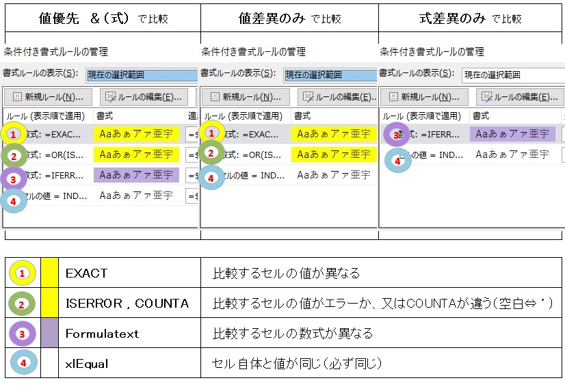 「設定されている条件付き書式」は <比較実行> により