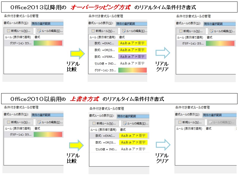 V5(2013以降)は 条件付き書式はリアル用のみ選択的クリア方式です